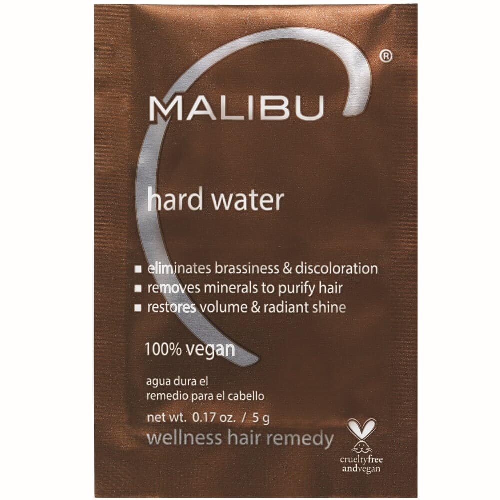 Malibu C Hard Water Wellness Hair Remedy single-use packet, brown with white text